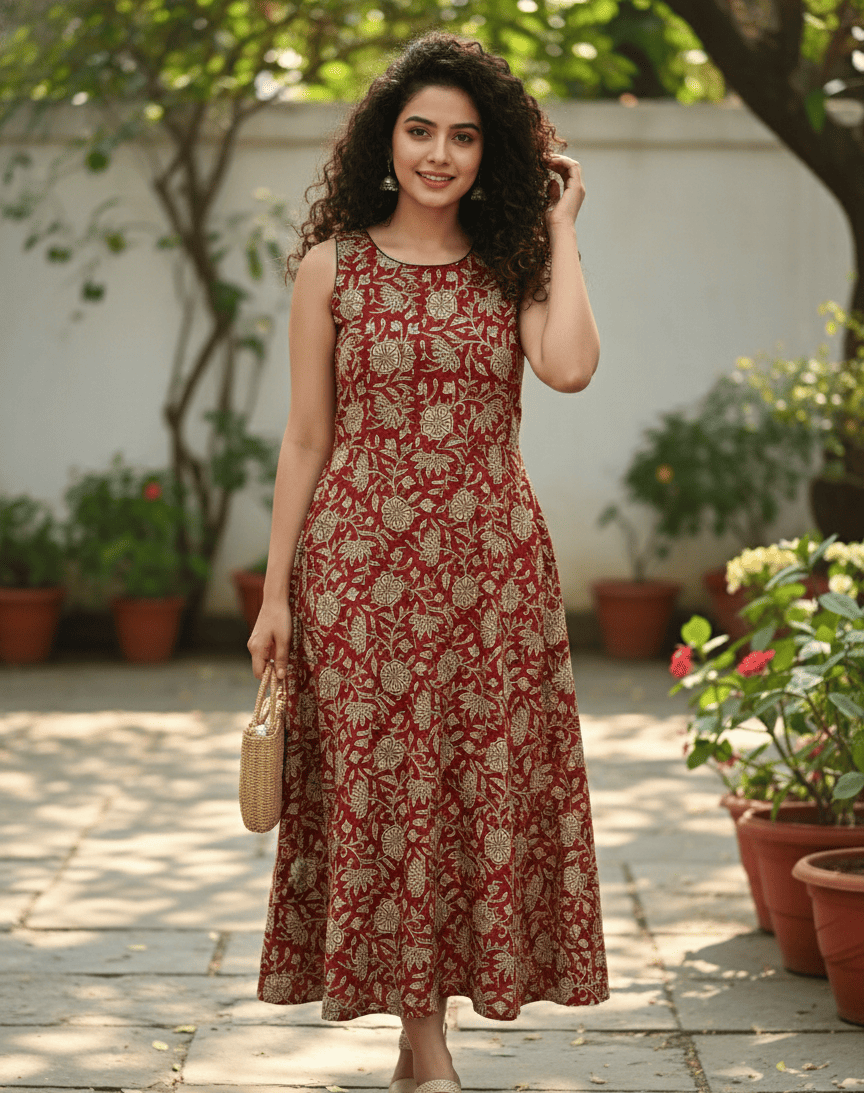 Color: Maroon Hand Block Print