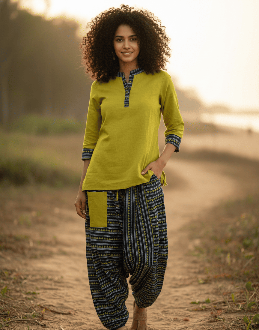 Be the first to review “Olive Green Solid Kurti with Printed Patiala Pants Set”